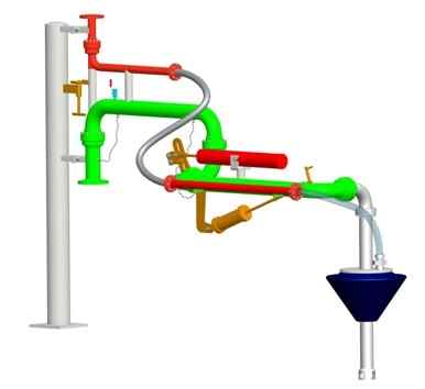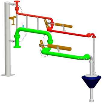 流體裝(zhuāng)卸臂(鶴管)是由旋轉靈活、密封性能好的旋轉接頭(tóu)與管道等部件串(chuàn)聯起來,用(yòng)於槽車與儲(chǔ)運管線間的流體(tǐ)物料傳輸(shū)。按照裝(zhuāng)卸形式和介(jiè)質要求分為:頂部裝卸(單/雙)臂和底部裝卸(單/雙(shuāng))臂。